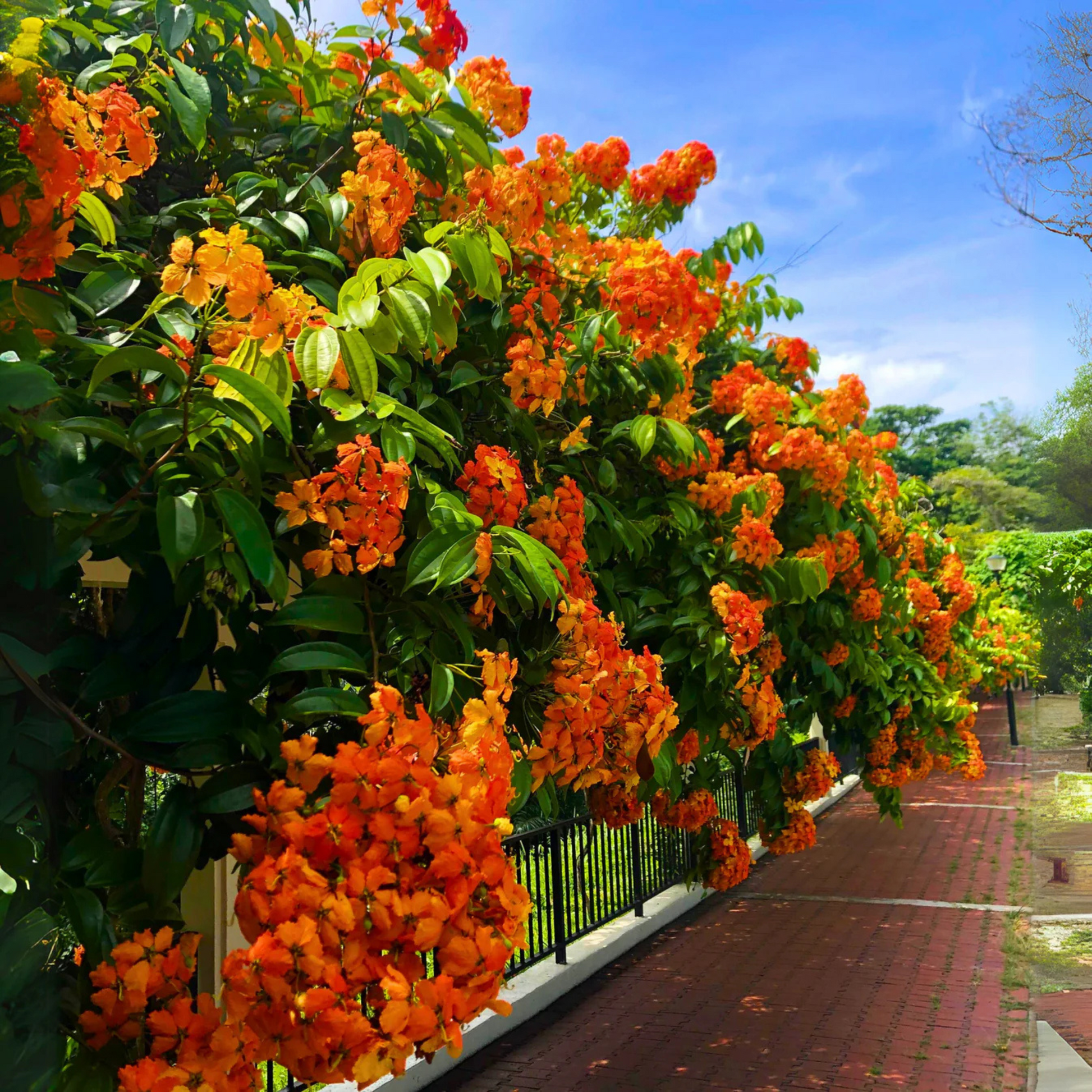 Transform your garden into a vibrant paradise with the Bauhinia Coccinea, also known as Western Red Trailing Vine, Orange Bauhinia, Climbing Bauhinia, Bauhinia Kockiana, or Kock's Bauhinia. This rare tropical flowering vine is admired for its spectacular clusters of yellow, orange, and fiery red blooms, making it an ideal choice for fences, trellises, pergolas, and garden walls.