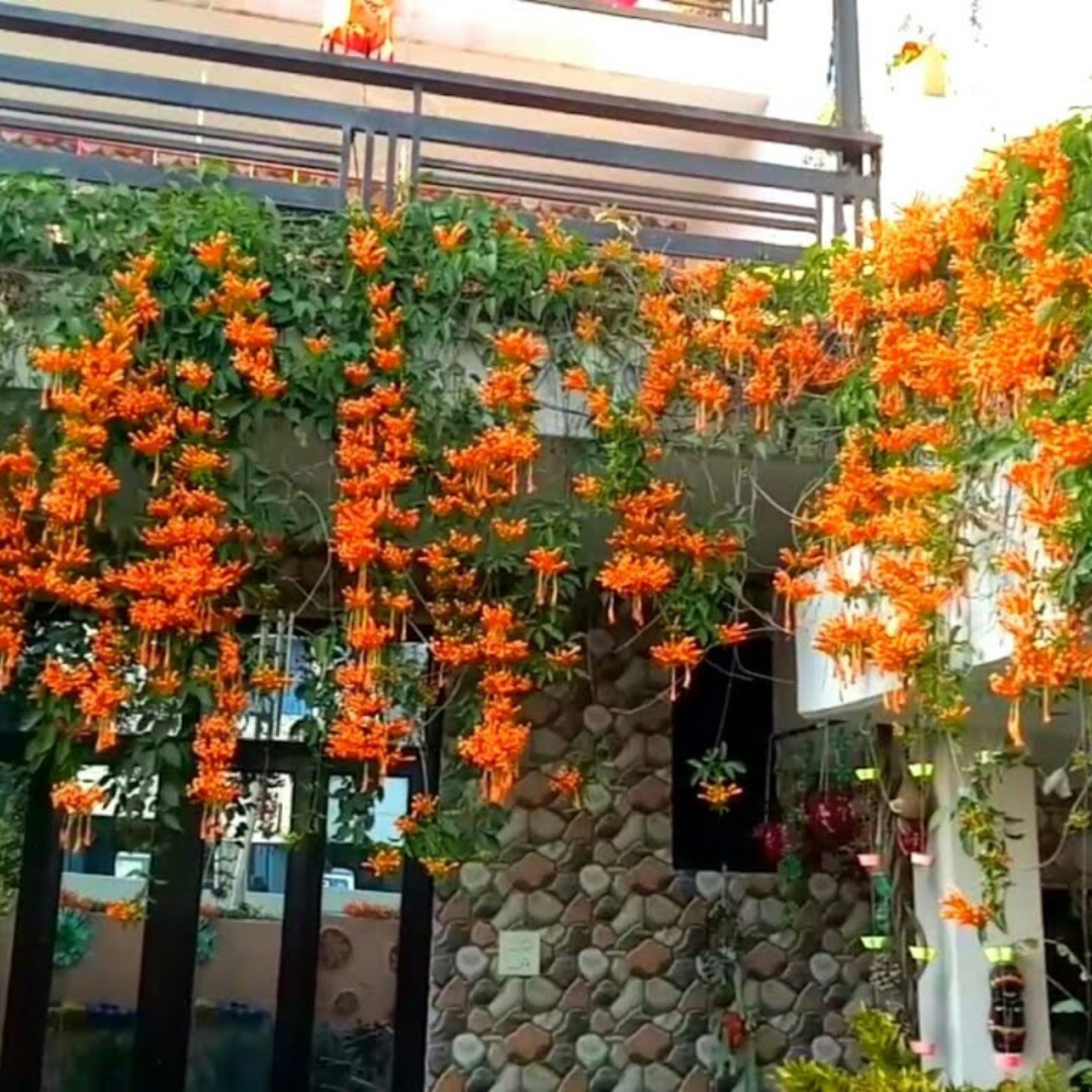 Also called the Flame Vine or Orange Trumpet Creeper, this plant is a fast-growing, all-season bloomer that thrives in Indian climates. Its fiery orange flowers attract butterflies and hummingbirds, making it a living artwork of nature. Perfect for home gardens, balconies, and boundary walls, it adds tropical beauty and elegance effortlessly. 🌺✨