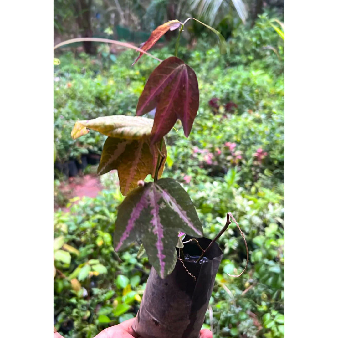 Bring home the charm of Passiflora Variegated, a rare and exotic flowering plant admired for its stunning variegated leaves and delicate white blossoms. Known as one of the most unique members of the Passionflower family, this plant adds both elegance and freshness to your home, balcony, or garden.